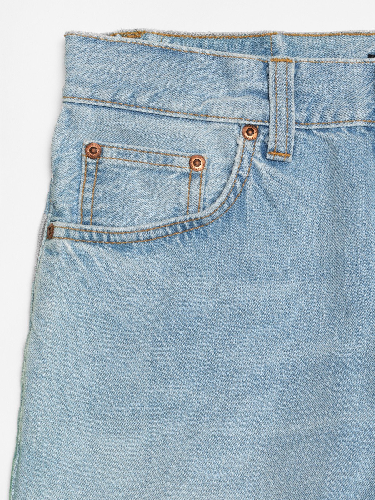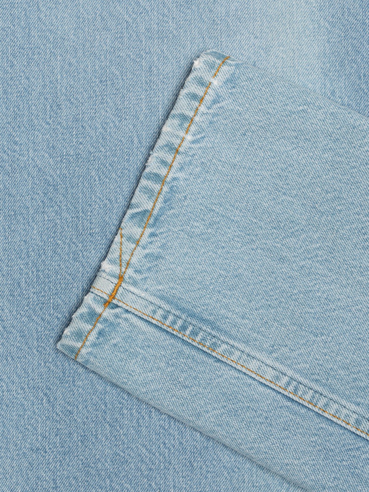Jeans coupe regular, jambe droite, d’un bleu vif éclatant. Sa luminosité éclatante est sublimée par des nuances de bleu moyen préservées au niveau des coutures et des lignes sergées du denim. Ces jeans sont une véritable œuvre d’art, harmonisant le délavage et le savoir-faire du denim pour offrir une expérience visuellement frappante et tactiquement riche.