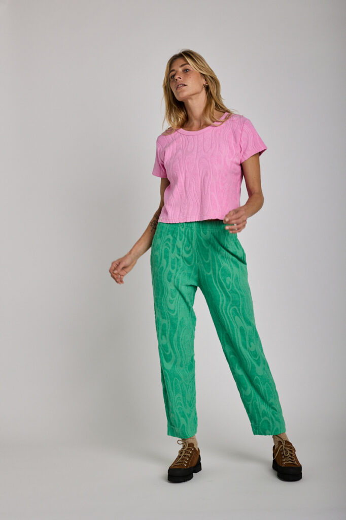 Jogging éponge jacquard 100% coton organique. Effet non gratté, Provenance matière Turquie.