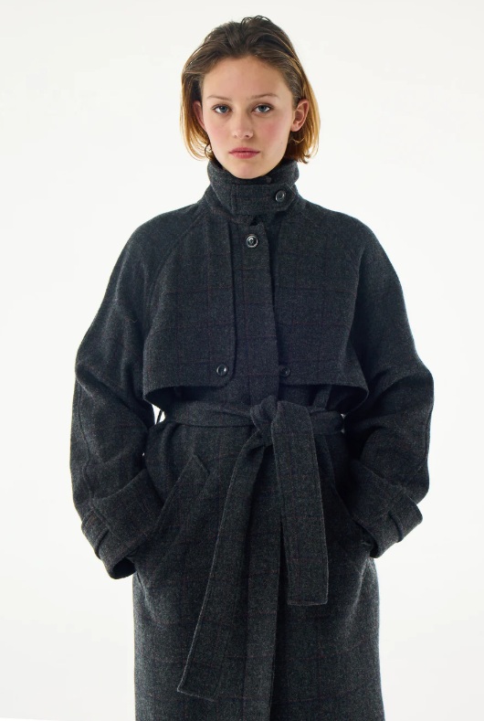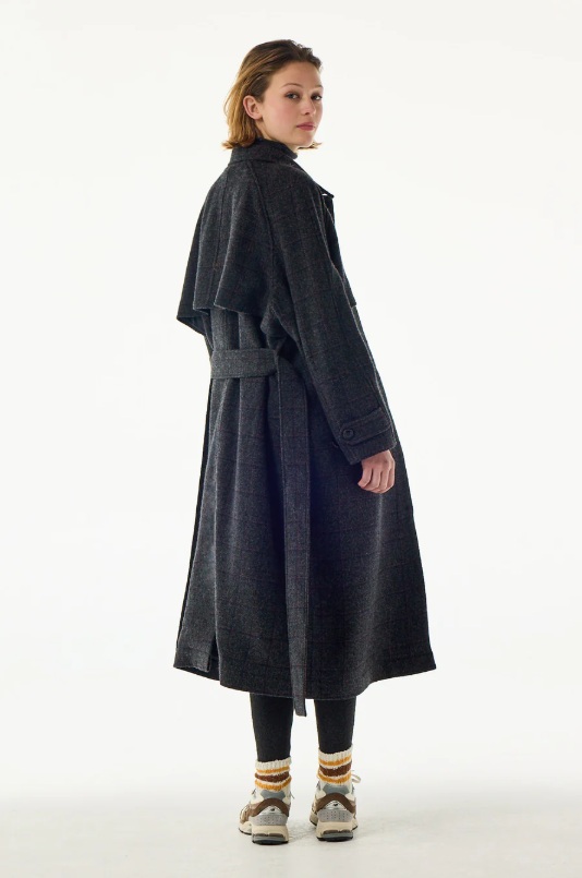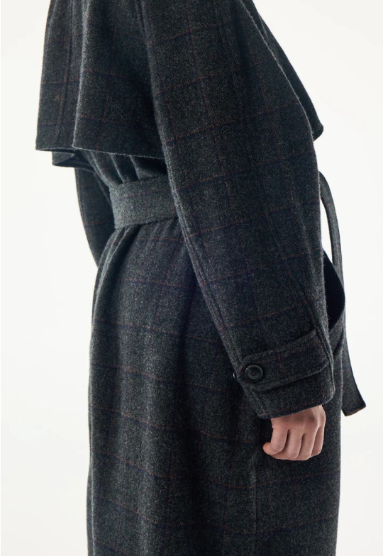 – Manteau long en laine vierge avec bavolets