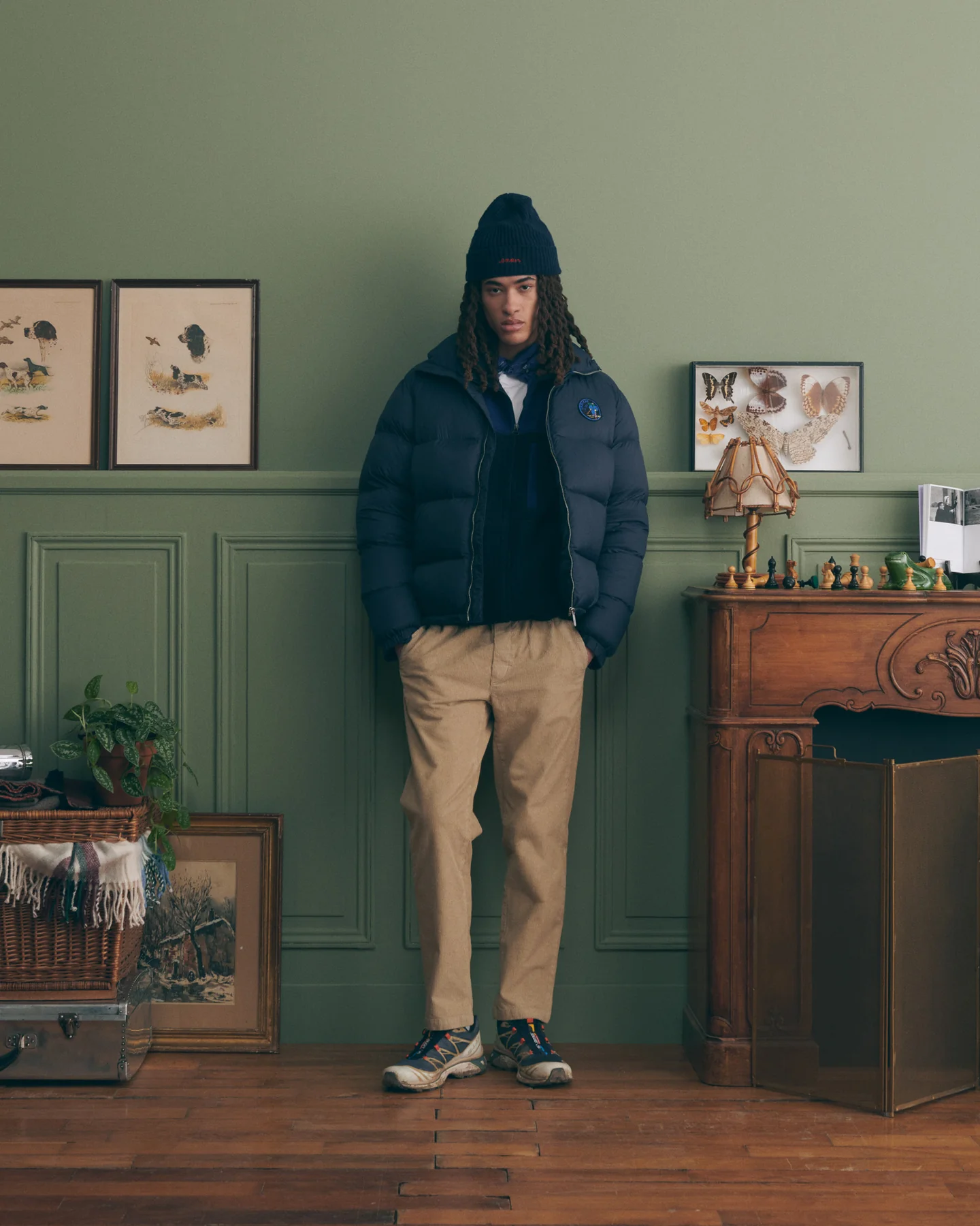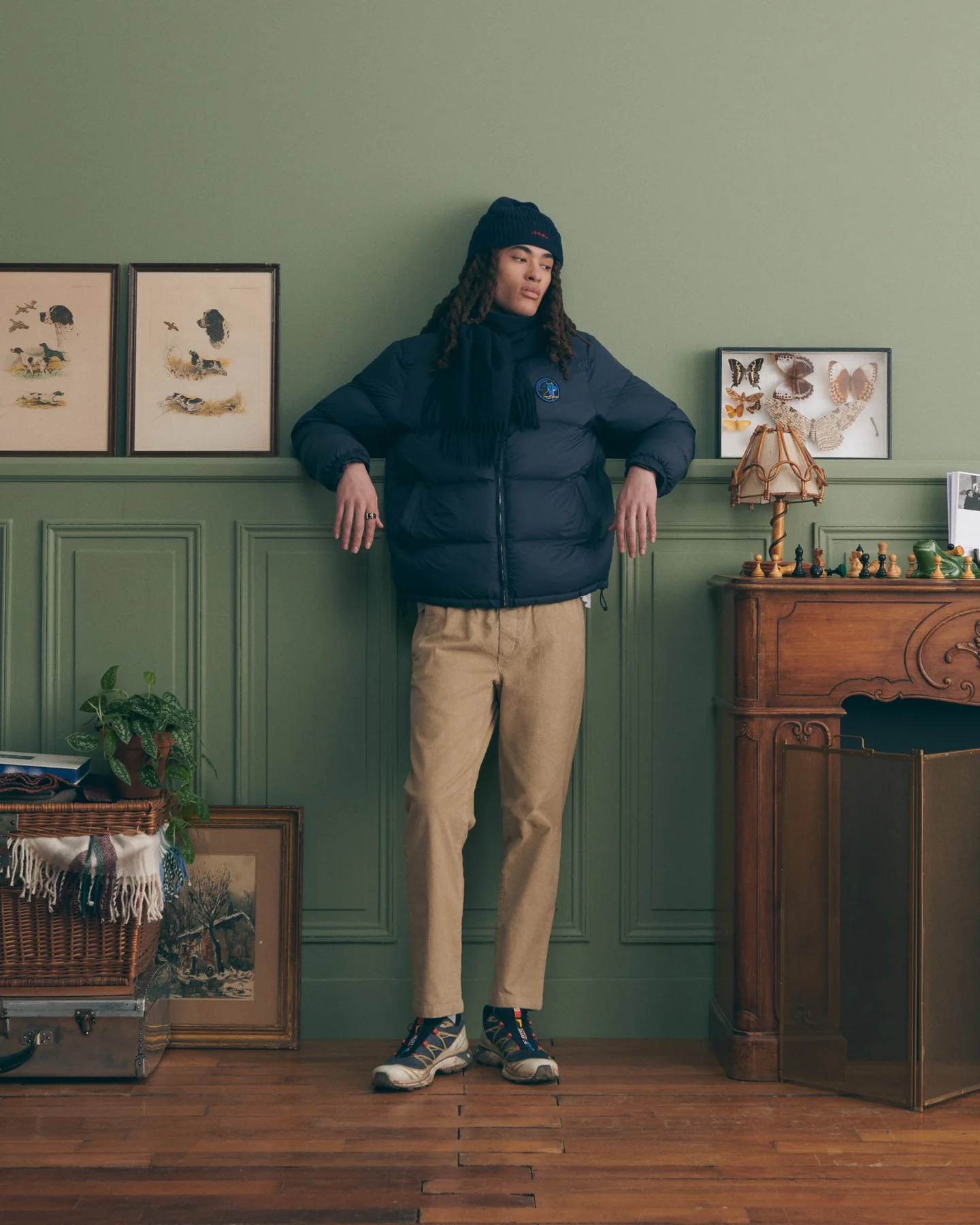 Le pantalon iconique Arcade a une coupe carotte avec les jambes fuselées, une ceinture élastiquée avec un cordon de serrage, ainsi que des poches italiennes à l’avant et des poches passepoilées à l’arrière.