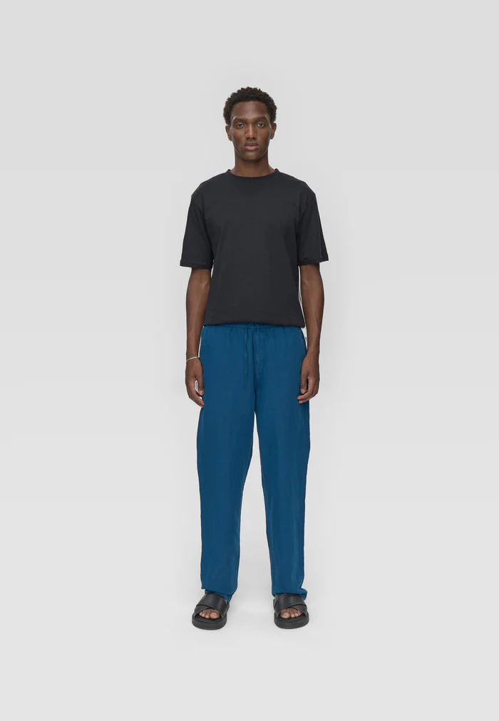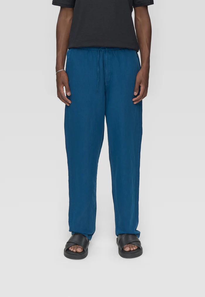 Ce pantalon pour homme est confectionné dans un mélange doux de coton et de lin. Ce tissu léger et respirant offre une coupe décontractée et confortable. Sa jambe droite et sa silhouette simple et élégante en font un vêtement idéal pour toutes les occasions, des plus décontractées aux plus habillées. La taille élastiquée avec cordon de serrage assure un ajustement parfait, tandis que les deux poches avant et la poche arrière ajoutent une touche pratique et classique. Ce pantalon est idéal pour les beaux jours, lorsque confort et style sont essentiels. Il se marie facilement avec un simple t-shirt ou une chemise, et la légèreté du lin en fait un choix parfait au quotidien comme en vacances.