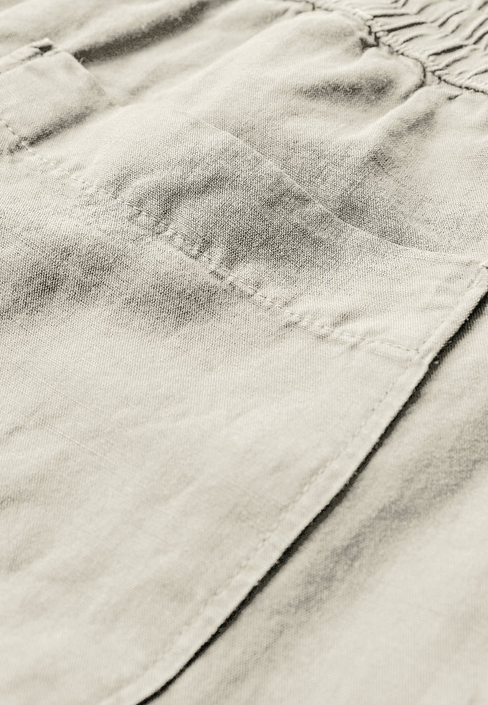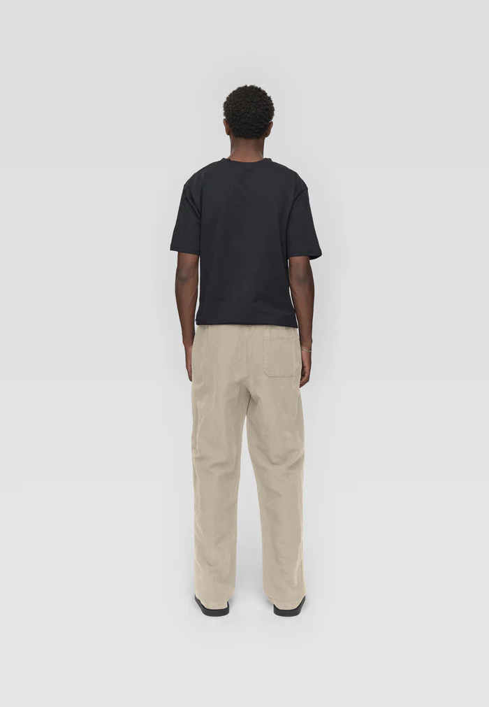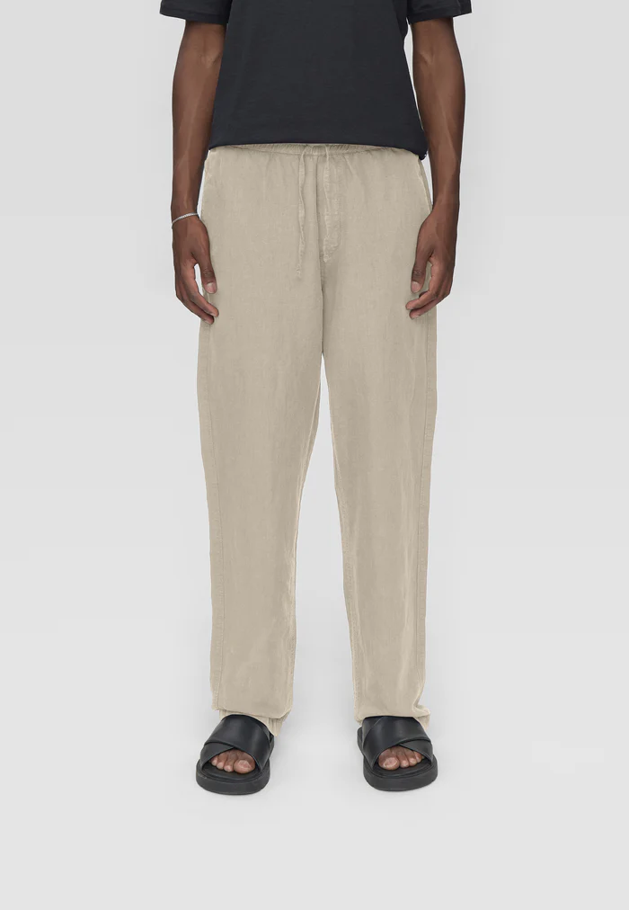 Ce pantalon pour homme est confectionné dans un mélange doux de coton et de lin. Ce tissu léger et respirant offre une coupe décontractée et confortable. Sa jambe droite et sa silhouette simple et élégante en font un vêtement idéal pour toutes les occasions, des plus décontractées aux plus habillées. La taille élastiquée avec cordon de serrage assure un ajustement parfait, tandis que les deux poches avant et la poche arrière ajoutent une touche pratique et classique. Ce pantalon est idéal pour les beaux jours, lorsque confort et style sont essentiels. Il se marie facilement avec un simple t-shirt ou une chemise, et la légèreté du lin en fait un choix parfait au quotidien comme en vacances.