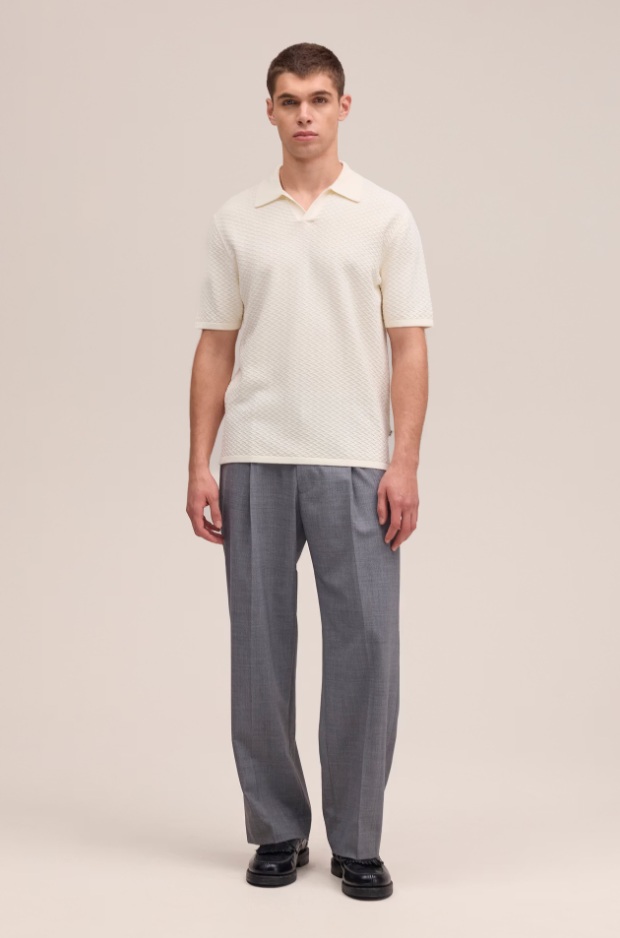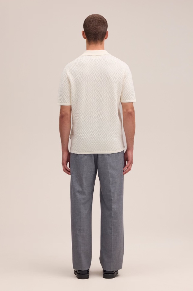 Polo à manches courtes en coton biologique à la texture fraîche et délicate. Il présente une couture torsadée et un col polo ouvert pour une allure minimaliste et légère.