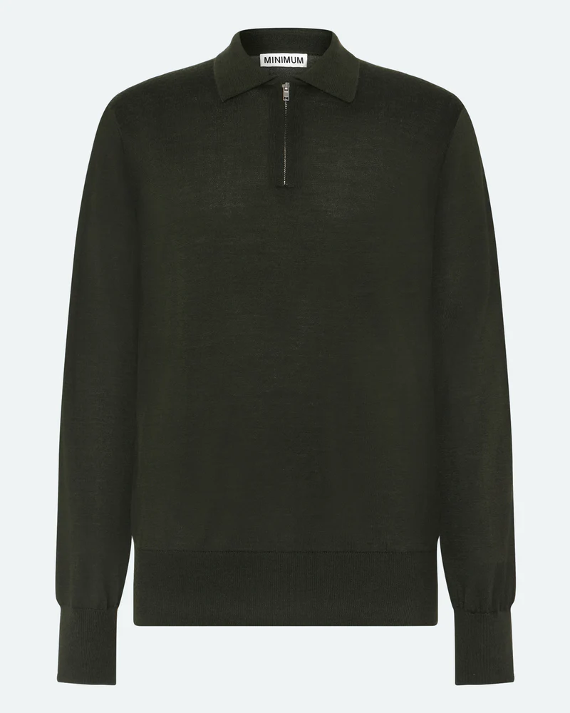 Roger est un pull polo fin composé à 51 % de laine mérinos et à 49 % de polyester, pour une qualité douce et chaude. Ce polo présente une coupe standard et est doté d’une fermeture éclair au col, d’un col et de bords-côtes.