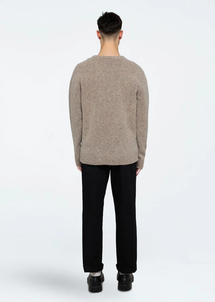 Roland est un pull épais composé de 36 % de coton, 34 % de polyamide, 17 % d’alpaga et 13 % de laine, pour une douceur et une chaleur exceptionnelles. Ce pull en maille présente une coupe standard droite et est confectionné dans une agréable matière mélangée, avec des bords-côtes.