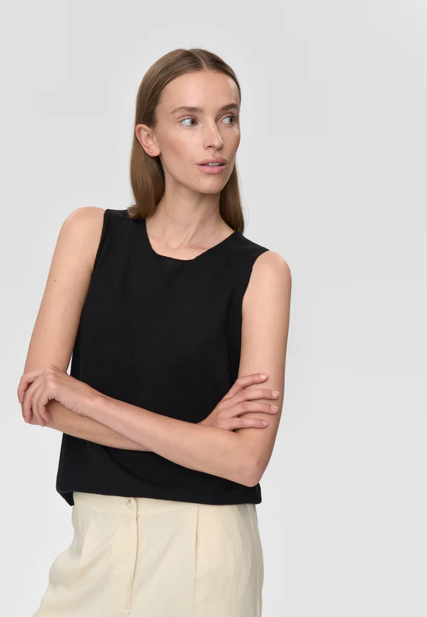 Auburns est un pull débardeur en maille fine, confectionné à partir de 60 % de laine mérinos et de 40 % de laine recyclée pour une douceur optimale. Il présente une coupe légèrement ample et un col rond.