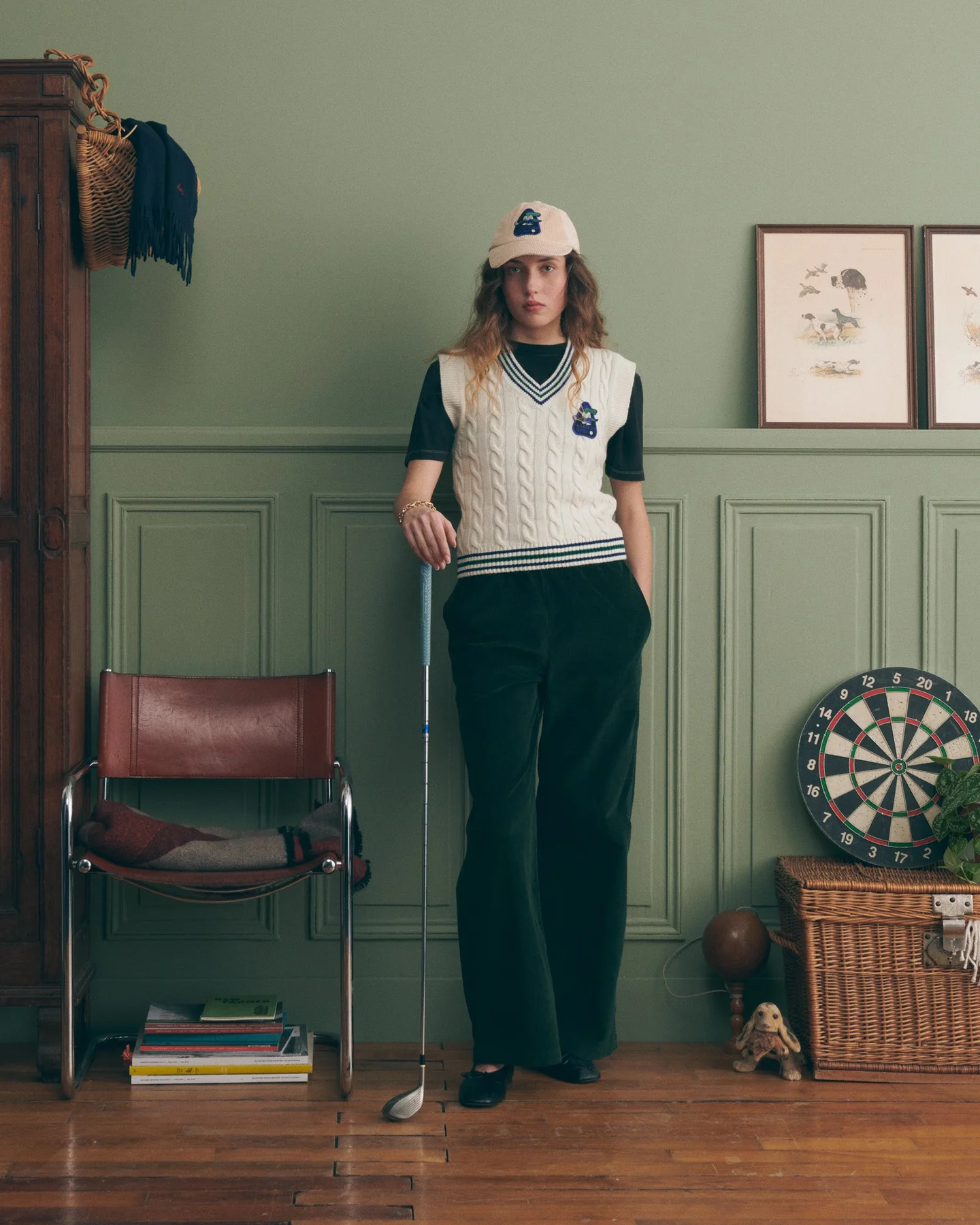 Le pull sans manche Mithouard a une coupe ajustée, une encolure en V et des torsades. Son patch brodé est pour ceux qui swinguent avec style.