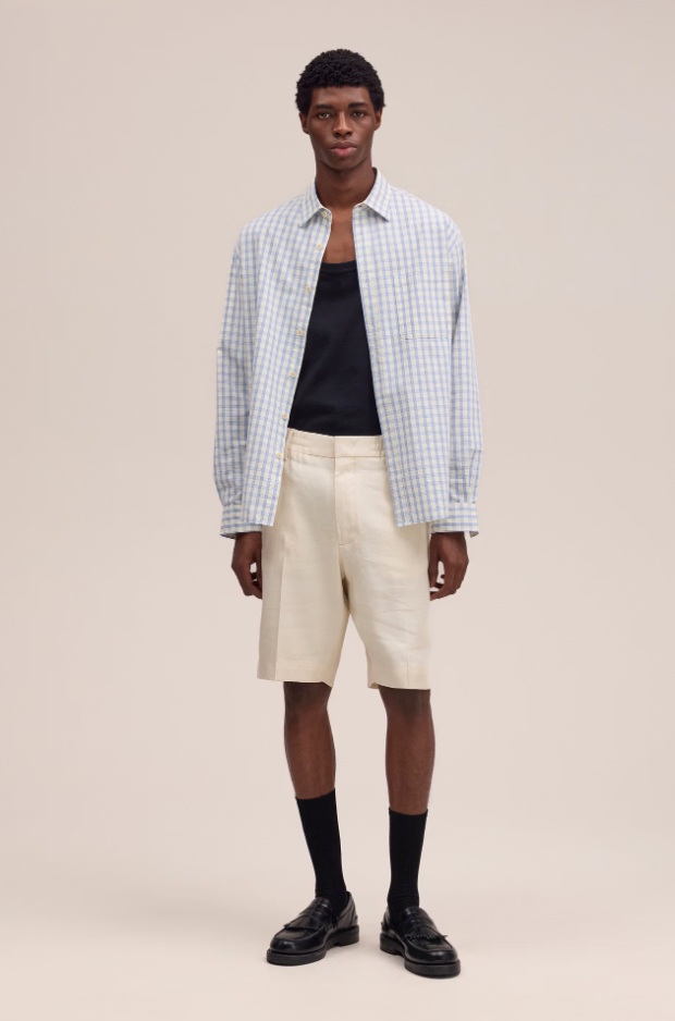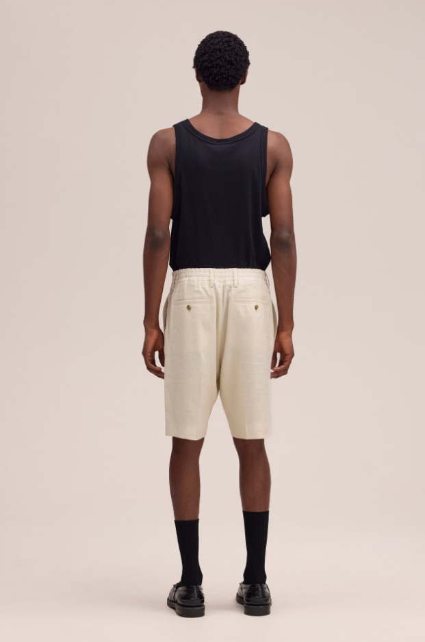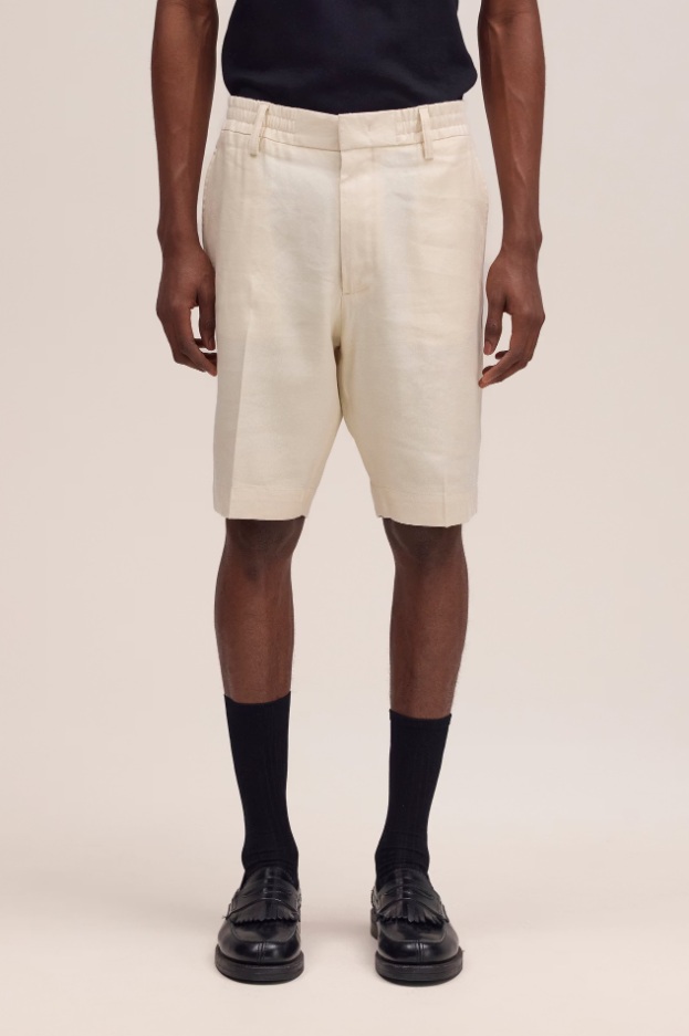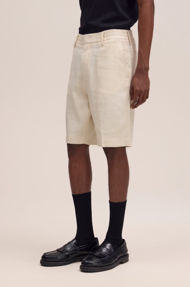 Short confectionné dans un tissage Panama robuste en viscose LENZING™ ECOVERO™ et lin européen. Doté d’une taille élastiquée, d’une fermeture à agrafe et d’un cordon de serrage intérieur pour un confort optimal.