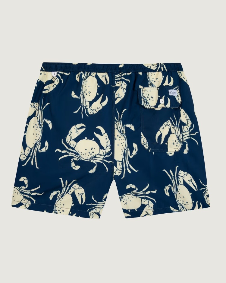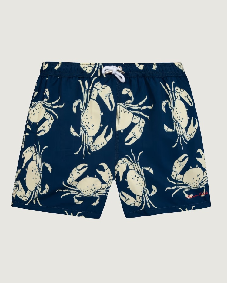 Le short de bain Maillot Crab Print a une coupe confortable, une ceinture élastiquée avec un cordon de serrage et une poche à rabat à l’arrière. Son imprimé est pour ceux qui aiment les crustacés.