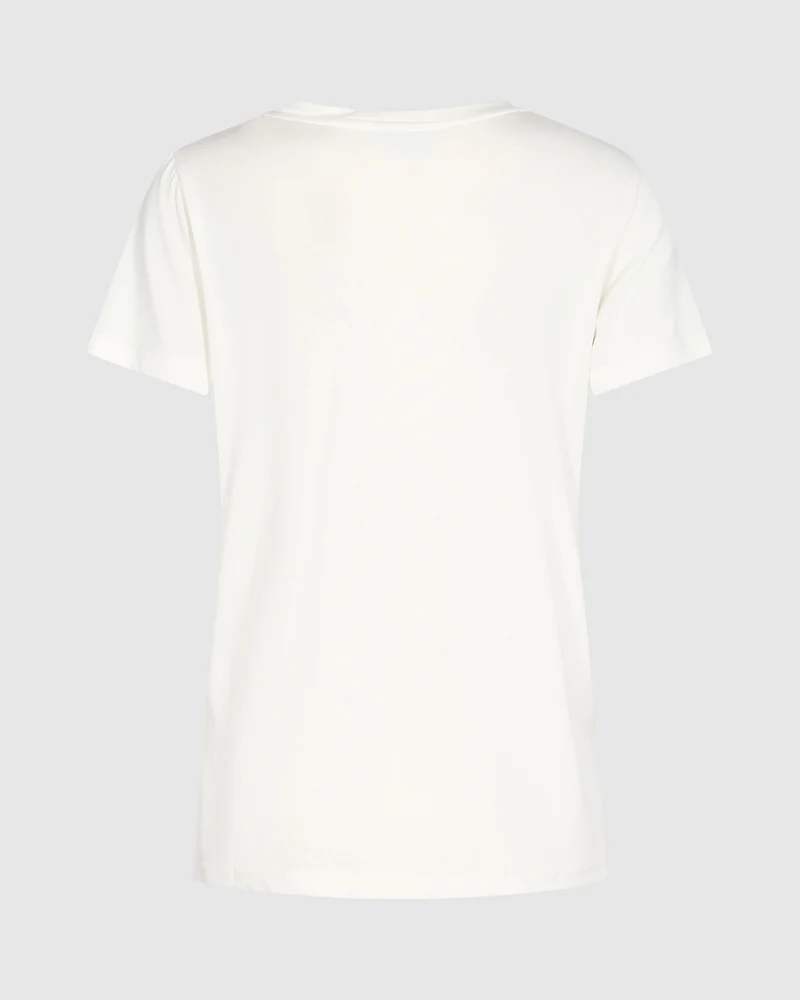 Rynah est un t-shirt à manches courtes composé à 70 % de modal (TENCEL™) et à 30 % de polyester recyclé, avec un effet légèrement délavé. Ce t-shirt à col rond possède une coupe classique.