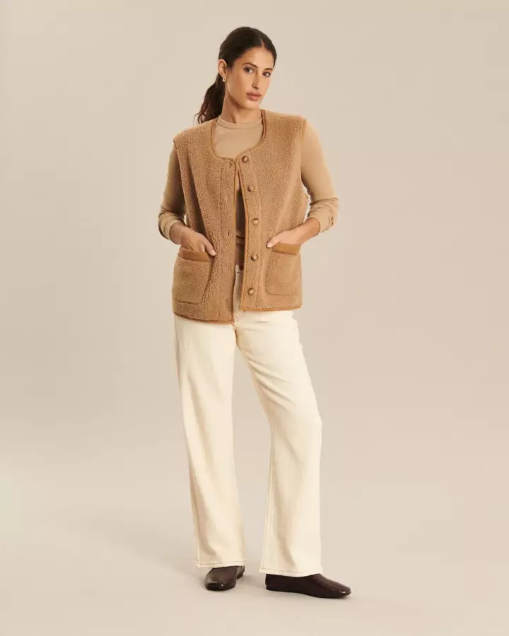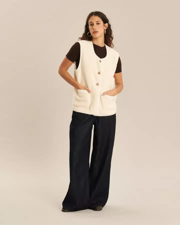 Polaire sans manches Guillebon Oatmeal/Blue Maison Labiche