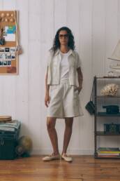 Short Beudant Palm Linen Patch Olive Maison Labiche